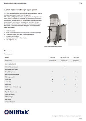 NILFISK T75 - Endüstriyel Vakum Makineleri ÜRÜN ÖZELLİKLERİ